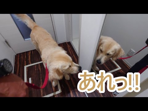 お出かけ前鏡を見ているとアレレ!ゴールデンレトリバーティト。goldenretriever