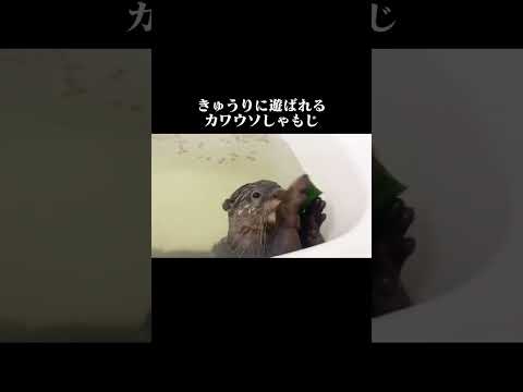 きゅうりに遊ばれるカワウソ