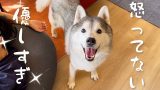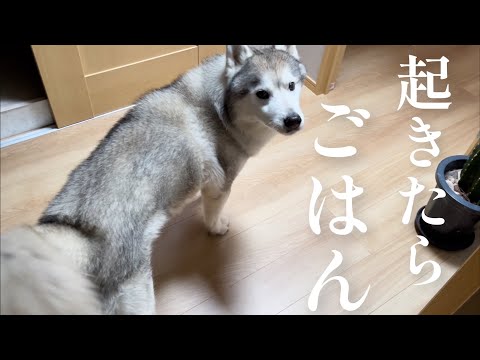 ごはんの前に散歩に行く事に対して不満を露わにするシベリアンハスキー