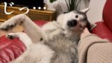 すごくナチュラルにぬっぽり収まるシベリアンハスキー