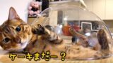そうやって2匹同時に籠に乗るからすぐ怖れるんだよ?