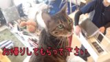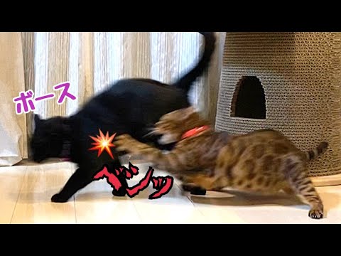 そろそろ黒猫に猫部屋に帰ってほしくて爆発するボス猫