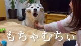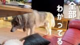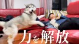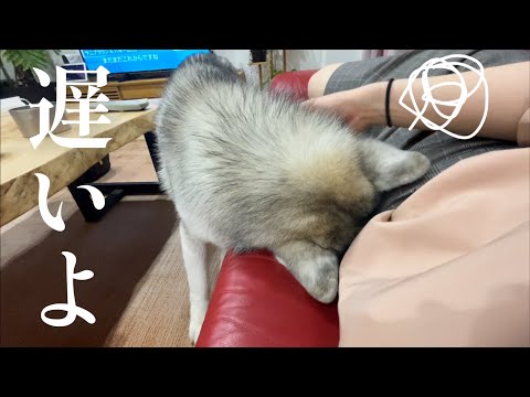 とっても眠いのに、夜中に帰った姉に顔を押し付けて甘えてくれるシベリアンハスキー