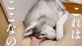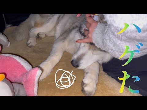 ほっぺがハゲたので、秘密基地でぎゅうぎゅうになりながら薬を塗られるシベリアンハスキー