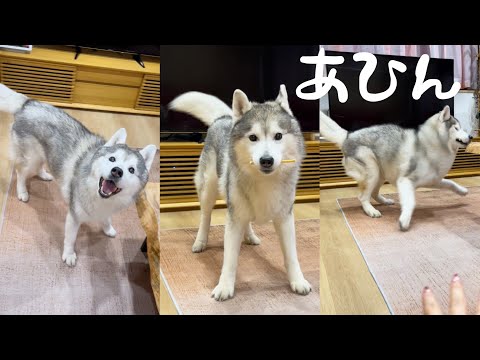 よそ見して顔面を強打してしまったシベリアンハスキー