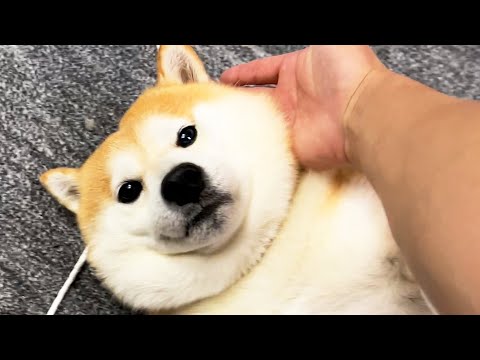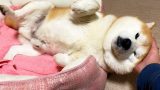 ウキウキ顔で家族に近づくも意識の外側からの手刀で簡単に意識を刈り取られる柴犬