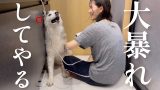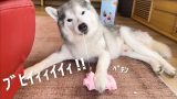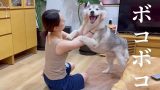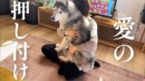 オンライン会議中も撫でられることに全力を尽くすシベリアンハスキー