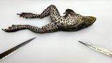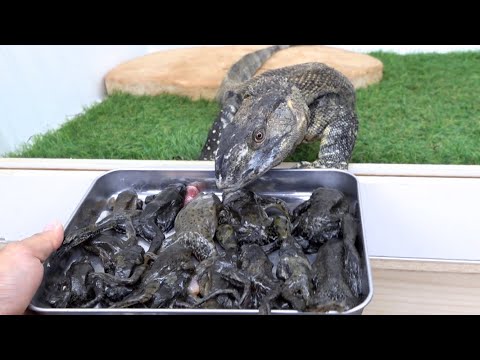 カエルが大好物のオオトカゲに山盛りのウシガエルをプレゼント