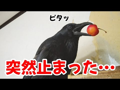 【止まった···】カラスに巨大さくらんぼを与えたら突然止まりました 20220712、カラス&四つ足カルテット