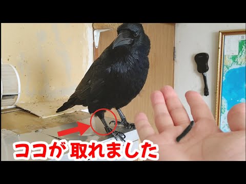 【脚のココが取れました】カラスの一番大きな部品が 取れました 20220707、カラス&四つ足カルテット