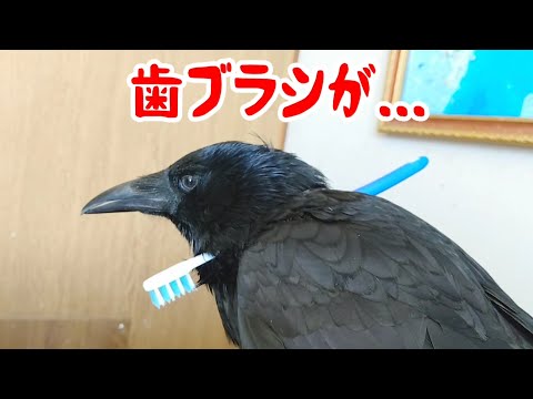 カラスの首に歯ブラシがぐさりと貫通しております 20220524、カラス&四つ足カルテット