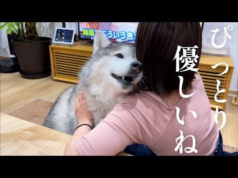 ダラける姉にピトッとくっついて無限の愛情を伝えてくれるシベリアンハスキー