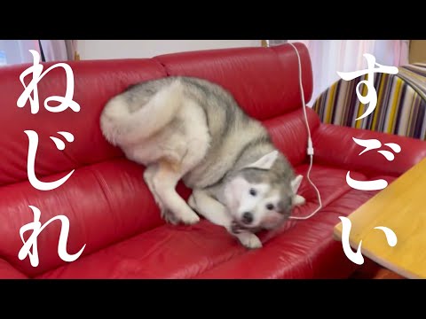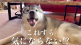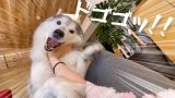 ドアの前に張り付いて姉の帰宅を待ち、歓喜の雄叫びを披露するシベリアンハスキー、つい親指を食う