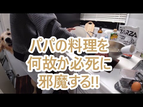 パパのスーパーな料理を必死で邪魔する意味不明なゴールデンレトリバーティト。