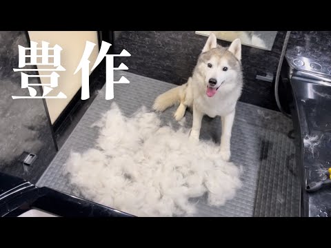ブラッシングから逃亡を図るも、最終的には大量の毛を収穫されるシベリアンハスキー