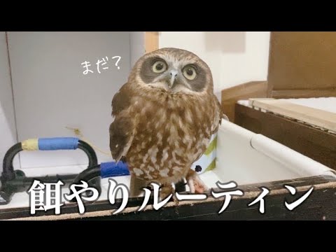 ペットのフクロウの餌やりナイトルーティン Pet owl feeding night routine