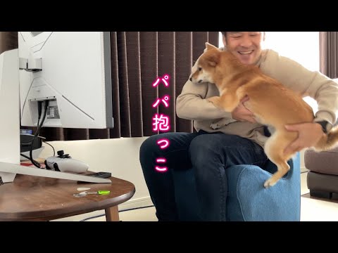ママがいないといつもは懐かないパパにベッタリ甘えて一切離れなくなる柴犬が可愛い