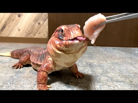 レッドテグーのトマトが大きなお口でご飯を頬張ります