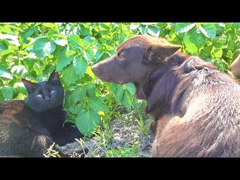 ワンコと猫と一緒にじゃがいものお世話をしたよ