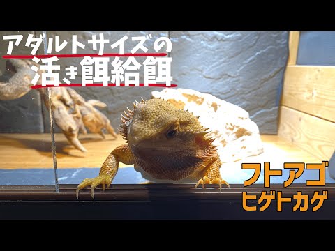 【フトアゴヒゲトカゲ】久々のおやつに大興奮!アダルトサイズの活き餌給餌