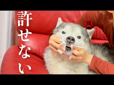 二刀流で歯を磨いてきた姉に失望するも、しばらくしたら笑顔で許すシベリアンハスキー