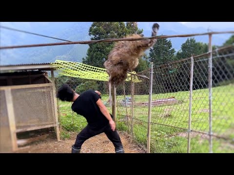 人間に慣れていないエミューを捕まえようとするとこうなる