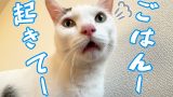 休日で寝てる娘の横で起きるのを待つ猫ハムちゃんが可愛い…!