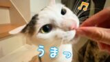 何も言わなくてもお手をしてご飯アピールしてくる猫チロさん