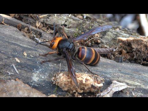 倒木の中で冬眠する虫を叩き起こす、他