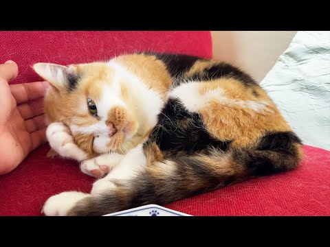 優雅な昼下がりを過ごす三毛猫のまりも