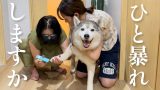兄達に足の長さの指標にされるシベリアンハスキー