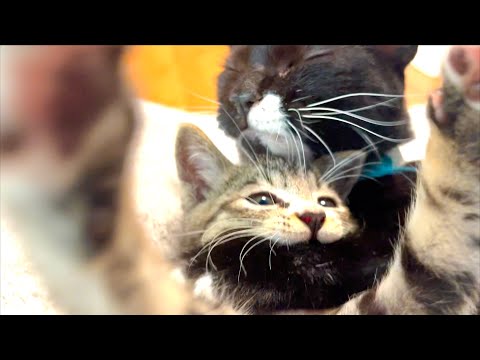 先輩猫にハグされて子猫が大興奮してしまいました