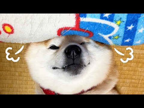 全人類の煩悩を払うため洗濯前のお父さんの枕に108ポムポムされる柴犬
