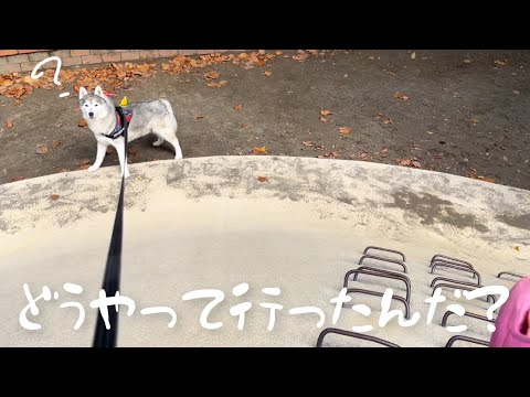 公園にそびえ立つ伝説の山の頂へは行けなかったシベリアンハスキー