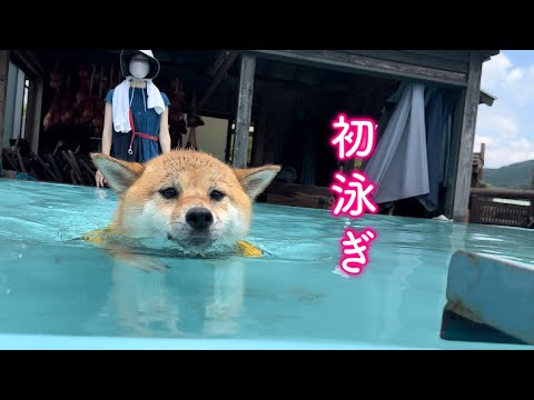 初めてのプールで水が苦手なはずの柴犬が泳ぎが上手すぎて凄かった!