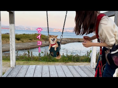 初めてブランコに乗せたら上機嫌になった乗り物大好きな柴犬が可愛すぎる