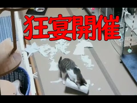 夜の猫ティッシュ祭り、1枚取れたら狂気の宴が始まった