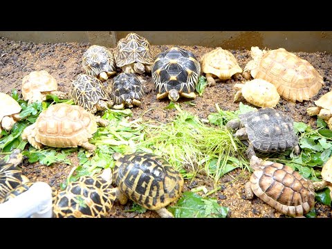 大量のリクガメ放し飼いスペースに野菜を置いてみるとすごいことに…!