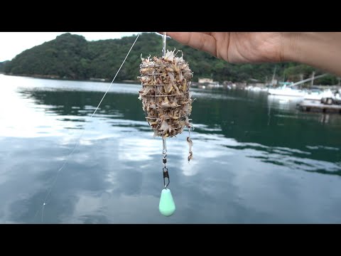 大量発生したカゲロウをカゴに詰めて海に投入