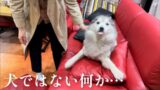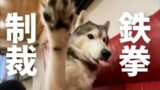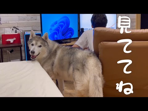 姉のPCを占領する兄の肘置きとしてその役目を全うするシベリアンハスキー