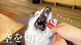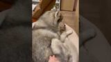 嫌々毛を抜き取られるも気遣いの「ペロ」は欠かさないシベリアンハスキー