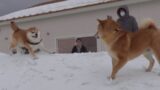 子猫が柴犬の親分に勇気を振り絞る流れ。