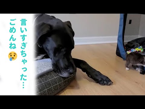 子猫ちゃんに強く怒ってしまったワンコ