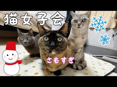 寒波で雪の日は寒すぎて猫女子会が開催されました!