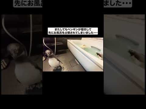 寝坊して先にお風呂を占領されてしまったときのペンギンの反応が可愛すぎるw