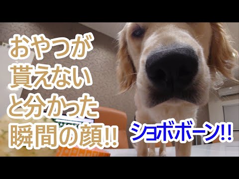 意地悪?おやつが貰えないと分かった瞬間の顔。ゴールデンレトリバーティト。