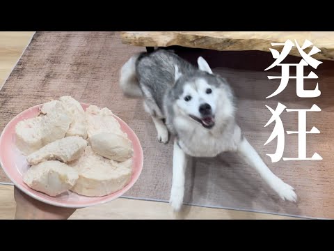 手作りの激うまサラダチキンが楽しみすぎて魂の大発狂が止まらないシベリアンハスキー