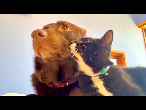 振り返るとワンコと猫が珍しくこうなってました