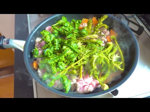 採れた山菜を全部入れた豪快な料理作ってみたよ