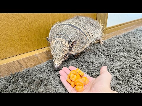 散歩中のアルマジロに大好物を見せてみると…